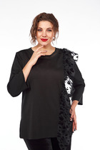 Длина жакета по спинке около 66 см в размерах 40-46 и около 69 см в размерах 48-52, длина рукавов около 61 см. Длина брюк по боковому шву с поясом около 97 в размерах 40-46 и около 98,5 см в размерах 48-52, длина по внутреннему шву около 70 см.