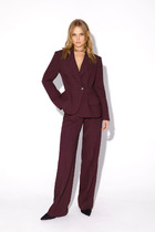 Длина жакета по спинке около 69 см в размерах 40-46 и около 72 см в размерах 48-52, длина рукавов около 62 см. Длина брюк по боковому шву с поясом около 114 в размерах 40-46 и около 115,5 см в размерах 48-52. Длина по внутреннему шву около 83 см
