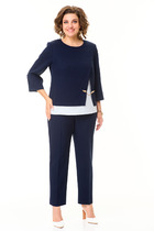 Длина жакета по спинке около 67 см в размерах 40-46 и около 69 см в размерах 48-52, длина рукава около 61 см. Длина брюк по боковому шву с поясом около 112 см в размерах 40-46 и около 113 см в размерах 48-52. Длина брюк по внутреннему шву около 81 см