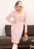 Длина жакета по спинке около 70 см в размерах 40-46 и около 72 см в размерах 48-52, длина рукава около 62 см. Длина юбки по боковому шву с поясом около 61 см в размерах 40-52 см