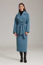 Длина жакета по спинке около 64 см в размерах 40-46 и около 67 см в размерах 48-52, длина рукавов около 61,5 см. Длина юбки по боковому шву с поясом около 55 см.