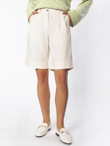 Текстильный костюм-двойка из асимметричного свободного жакета с двойным воротником и укороченных брюк со стрелками.