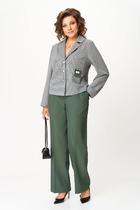 Костюм-двойка из приталенного жакета с акцентными плечами и укороченных классических брюк со стрелками.