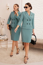 Длина жакета по спинке около 71 см в размерах 40-46 и около 72 см в размерах 48-52, длина рукавов около 62 см. Длина жилета по спинке около 48,5 см в размерах 40-46 и около 51,5 см в размерах 48-52. Длина юбки по боковому шву с поясом около 46 см в размерах 40-46 и около 49 см в размерах 48-52 см