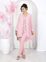 Длина жакета по спинке около 71 см в размерах 40-46 и около 72 см в размерах 48-52, длина рукавов около 62 см. Длина юбки по боковому шву с поясом около 46 см в размерах 40-46 и около 49 см в размерах 48-52 см