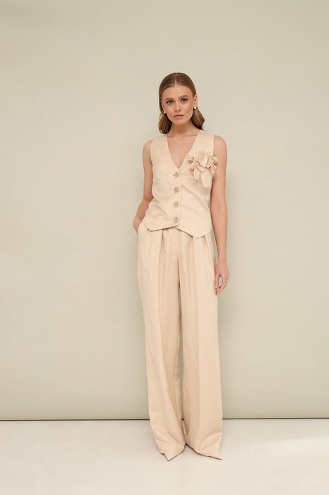 Костюм Элль стиль 2395 бежевый принт, брюки капучино