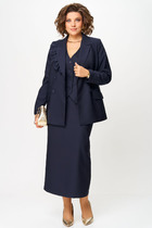 Комфортный трикотажный комплект, состоящий из джемпера и юбки. Джемпер прилегающего силуэта, с округлым вырезом горловины. Длинные втачные рукава. Юбка-карандаш, с притачным поясом со шлевками. По переду высокий разрез, который обработан планкой из экокожи. Застежка сзади, в среднем шве на потайную молнию.