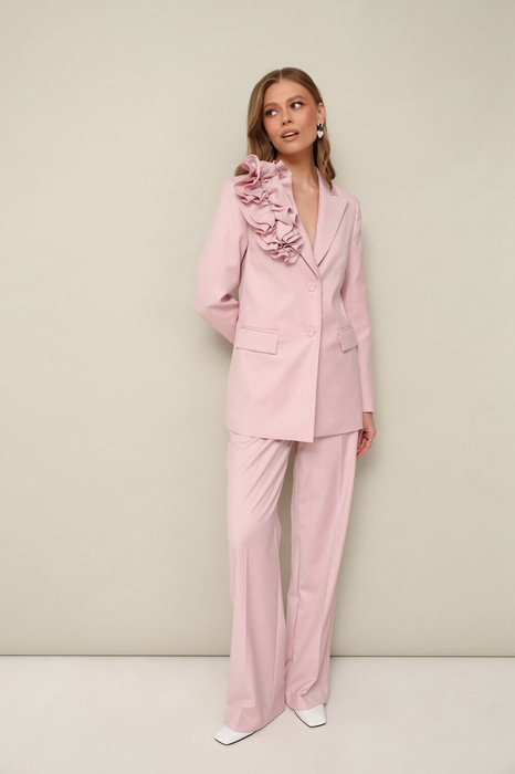 Эффектный 2-предметный комплект, состоящий из жакета и брюк, выполненный из костюмной ткани.