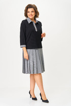 Комплект 2-предметный, состоящий из блузки и юбки на запах. Блузка прямого кроя, горловина обработана воротником на стойке, застежка на притачной планке на петли и пуговицы. Перед блузки с накладными карманами с клапанами. Рукава длинные с притачной манжетой с застежкой на пуговицы. В боковых швах обработаны разрезы. Юбка на запах в длине миди. Притачной пояс с застежкой на полукольца, внутри фиксируется на пришивные кнопки.
