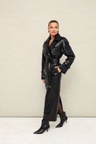 Стильный 2-предметный комплект, состоящий из жакета и юбки, выполненный из экокожи.