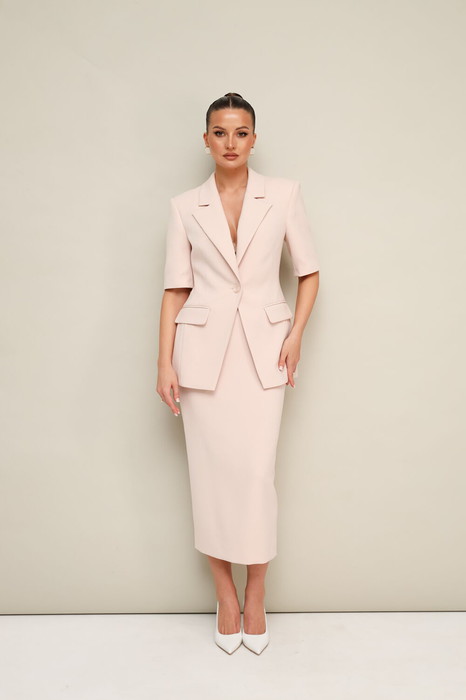 Стильный 2-х предметный комплект, состоящий из жакета и юбки, выполненный из костюмной ткани.