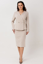 Брючный комплект из костюмной ткани на подкладке. Двубортный жакет выполнен в стиле оверсайз. Воротник-с отложными лацканами пиджачного типа, рукава – двухшовные. По переду- прорезные карманы с клапанами. Жакет имеет два ряда пуговиц, застегивается на две основные пуговицы, одну потайную, остальные пуговицы несут декоративный характер. Брюки прямые со складкой, широким поясом-обтачкой, наклонными карманами. Застегиваются на молнию по переду и пуговицу.