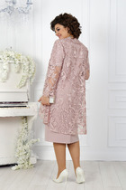 Брючный комплект из костюмной ткани на подкладке. Двубортный жакет выполнен в стиле оверсайз. Воротник-с отложными лацканами пиджачного типа, рукава – двухшовные. По переду- прорезные карманы с клапанами. Жакет имеет два ряда пуговиц, застегивается на две основные пуговицы, одну потайную, остальные пуговицы несут декоративный характер. Изюминка комплекта - декоративная булавка розового цвета. Брюки прямые со складкой, широким поясом-обтачкой, наклонными карманами. Застегиваются на молнию по переду и пуговицу.