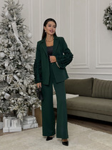 Брюки- клеш,плотно сидящие по фигуре, начало расширения на 5см выше колена. Брюки с наклонными карманами по переду и поясом-обтачкой. Застегиваются на молнию по переду и одну пуговицу.