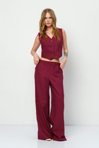 Брюки женские из текстильной ткани, прямого силуэта. Пояс брюк на резинке.