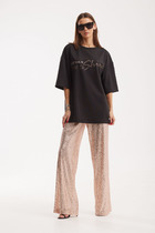 Костюм молодежный — шорты с рюшами по низу, свободная футболка с принтом