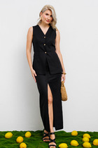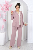 Костюм выполнен из смесовой ткани, достаточно тонкий для лета, не сминается