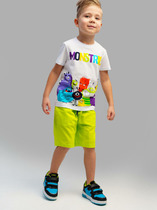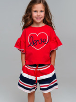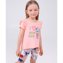 Комплект для девочки из футера, состоящий из 2 изделий: свитшот (джемпер) и леггинсы. Свитшот укороченный прямого силуэта, с длинными рукавами-реглан на манжетах. Круглая горловина оформлена бейкой. На переде принт. Низ свитшота не обработан.