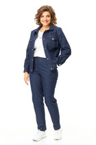 Брюки прямые, с карманами. Спереди рельефы с отделочными строчками. Пояс притачной, частично на резинке.