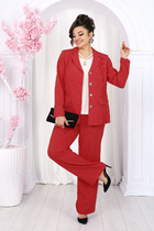 Комплект женский, 2х предметный, состоящий из джемпера и брюк. Джемпер прямого силуэта с рукавом длинной 7/8. Рукав со спущенной линией плеча и отрезной манжетой по низу. Горловина круглой формы, с подрезной планкой по переду. По бокам разрезы. Акцентом служит накладной карман по переду, задекорированный вышивкой и принтом. Брюки прямые, с наклонными карманами спереди. Пояс притачной, с резинкой по кругу.