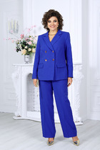 Комплект женский, 2х предметный, состоящий из блузки и юбки. Блузка полуприлегающего силуэта с цельнокройным рукавом длинной 3/4. Выполнена из трикотажного полотна "ТЕНСЕЛ". Вырез горловины "лодочка" По низу блузки, слева, декоративный элемент из рюши, в сочетании двух видов ткани. По спинке средний шов. Юбка широкая к низу, из текстильной ткани "вуалька" На подкладке. Пояс притачной с резинкой по кругу.