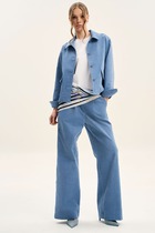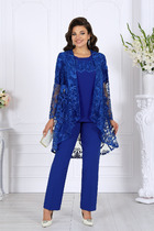 Отделкой служат молния, декоративная нашивка, наконечники. Фурнитура может незначительно отличаться от представленной на фото. Длина жакета от центра горловины спинки до низа 72,5-73,5 см. Длина рукава 61 см. Длина брюк по боковому шву без учета пояса 99 см. Материал хорошо тянется.