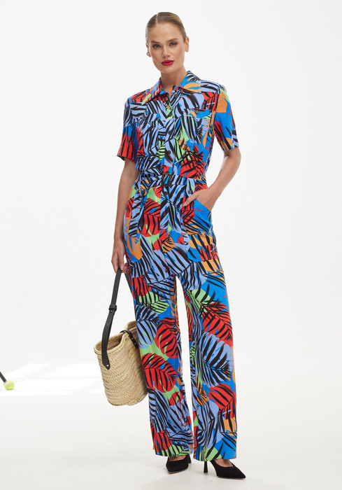 Стильный женский комбинезон понравится ценительницам комфорта. Его можно носить как с классической обувью, воплощая в жизнь элегантный и женственный образ, либо со спортивной, создавая эффект легкой небрежности. Натуральный состав ткани обеспечивает воздухопроницаемость и делает модель идеальной для летнего периода