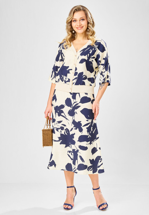 Костюм Твой Имидж 2387 молочный с синим принтом