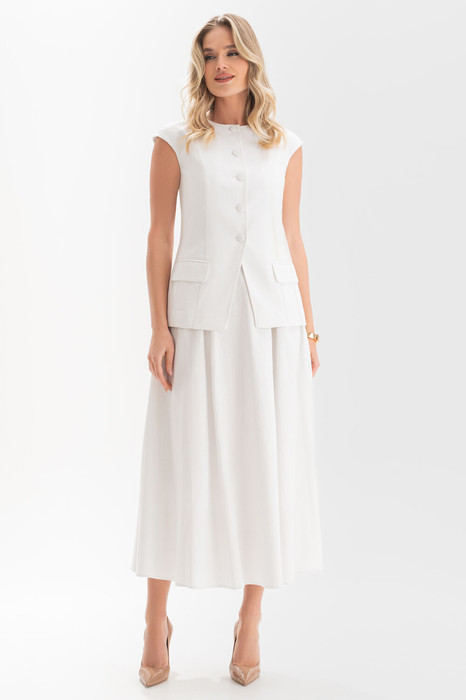 Костюм женский 2-х предметный, состоящий из жилета и юбки выполненных из костюмно-плательной ткани лен, предназначен как для нарядной, так и для повседневной носки.