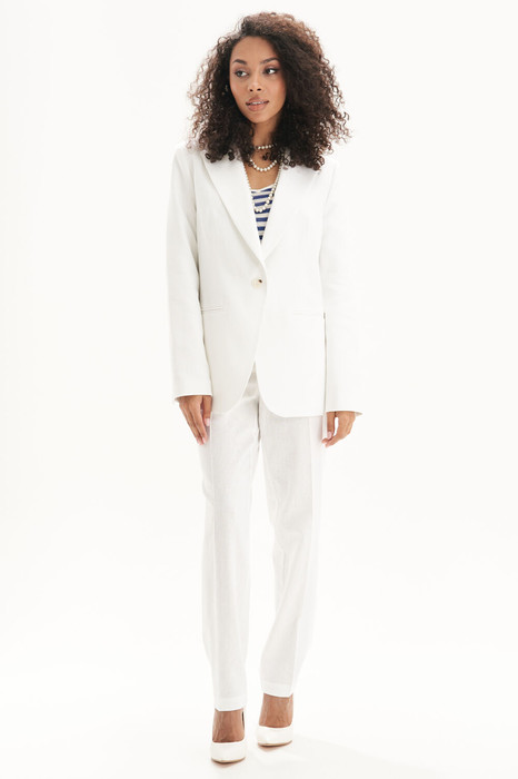 Костюм подходит для офиса, повседневной носки, городских прогулок, встреч и путешествий. Белый цвет освежает образ и легко сочетается с яркими акцентами: топами, блузами, аксессуарами.