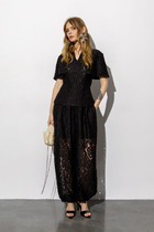 Юбка зауженная к низу, на притачном поясе, застегивающимся на 1 петлю и пуговицу. Переднее полотнище с рельефными швами. Заднее полотнище с талиевыми вытачками, со средним швом, в верхней части которого обработана застежка на потайную тесьму-молнию, в нижней – шлица. Юбка на притачной по низу подкладке. В размерах 50,52,54 в поясе на уровне боковых швов предусмотрены резинки, для лучшего прилегания по талии. Средняя длина жакета по среднему шву спинки 58,0 см, (±2,0 см);