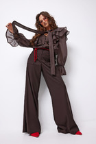 Длина жакета по спинке - 71 см. Длина рукава - 61 см. Длина жилета по спинке - 54 см. Длина брюк по боковому шву - 101 см.