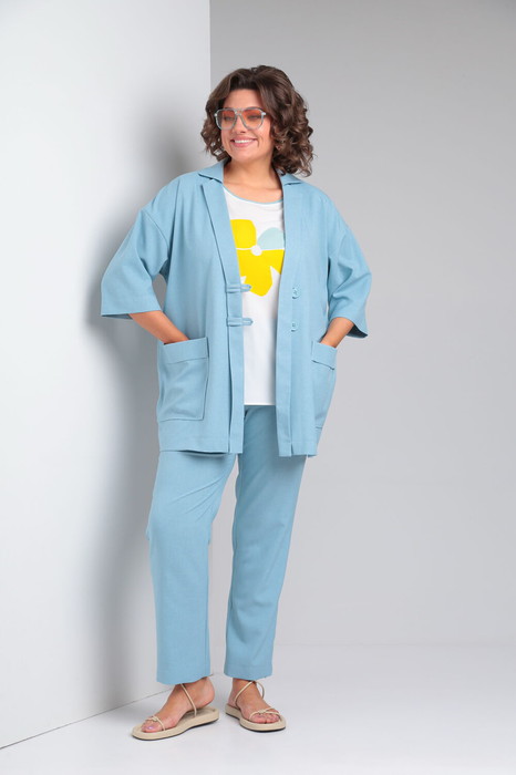 Состав: Блуза- ПЭ-100%; Костюм- ПЭ-39%; Спандекс-3%; Лён-58%;