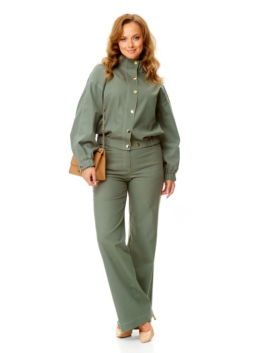 Низ рукава обработан отрезной манжетой на резинке и декоративными патами с застежкой на кнопку.