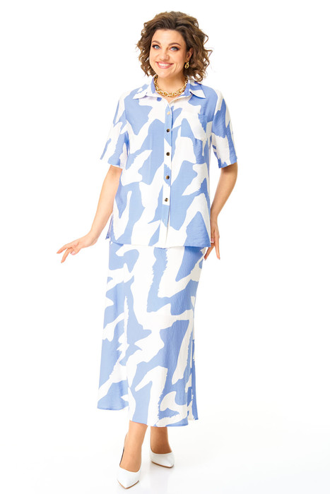 Блуза свободного покроя с естественной линией плеча. Перед с отрезной планкой, нагрудной вытачкой и накладным карманом с левой стороны. Рукав втачной одношовный до линии локтя. Воротник блузочный на отрезной стойке. Застежка на петли-пуговицы.