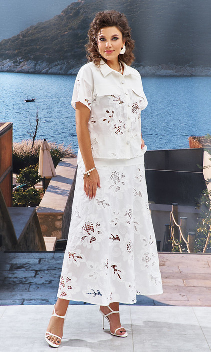 Этот летний костюм становится настоящим обаянием, который притягивает взгляды окружающих, придавая каждой женщине уверенность и шарм. Костюм идеально подходит как для прогулок по солнцу, так и для вечерних встреч в уютных кафе, даря своему обладателю ощущение легкости и свободы. Каждый шаг в этом наряде станет шагом к светлому настроению, а гармоничное сочетание ткани ришелье и отделочных деталей из однотонной джинсовой ткани привлекут восхищенные взгляды на каждого, кто имеет счастье пройти мимо.
