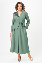 Невероятно яркий двух- предметный костюм для Вашего неповторимого образа выполнен из приятной на ощупь ткани помогая создать стильный образ, который будет уместен как для торжественных случаев, так и для деловых встреч. Жакет полуприлегающего силуэта на подкладке, с двубортной застёжкой на петли пуговицы по краю борта. Воротник пиджачного типа с лацканами. По переду жакета рельефы со вставками декоративной бахромы из основной ткани. Спинка с средним швом и декоративными рельефами. Рукав втачной, длинный, двухшовный. Юбка прямого силуэта длины «миди» с планкой, с имитацией застёжки на пуговицы по переду, переходящей в шлицу. Пояс в юбке притачной с вставкой эластичной тесьмы-резинки в бочка. По переду юбки наклонные карманы. По спинке в среднем шве застёжка на потайную тесьму-молнию и талиевые вытачки. Юбка на подкладке.Обращаем Ваше внимание, что фурнитура может незначительно отличаться от фотографии. Длина жакета от высшей плечевой точки до низа 63.5 см (р.50-54), 64 см (р.56-60), длина рукава 62 см. Длина юбки по среднему срезу заднего полотнища с поясом 81 см.