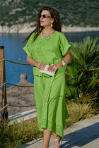 Летний комплект представляет собой гармоничное сочетание стиля и комфорта. В таком комплекте каждая деталь безупречно дополняет другую, создавая образ, который одновременно привлекает внимание и дарит ощущение комфорта. Этот наряд идеально подойдет как для прогулок по городу, так и для более камерных мероприятий, позволяя женщине чувствовать себя уверенно и очаровательно в летнее время. Блуза свободного силуэта гармоничном сочетании однотонного материала и декоративных вставок из ткани с принтом. Горловина в блузе округлой формы, по переду и спинке рельеф выходящий из проймы, по переду нагрудная вытачка. Рукав втачной с притачной с притачной манжетой с декоративным разрезом (рукав ассиметричный —левый из ткани с принтом, правый однотонный со вставкой в подрезе декоративного канта). Низа в блузе ассиметричный с декоративной треугольной вставкой по низу. Брюки-кюлоты свободного силуэта, длиной 7/8 расширяются к низу. Пояс притачной со вставкой эластичной тесьмы-резинки в задней части пояса, которая обеспечивает максимально удобную посадку на любой тип фигуры. В боковом шве застёжка на потайную тесьму-молнию и пуговицу в поясе. По переду кюлот из бокового шва отлетная деталь, фиксируется у пояса при помощи пряжек-полуколец. Длина блузы 61 см, длина рукава 40 см (р 52-56), 41 см (р 58-62). Длина брюк 92 см.