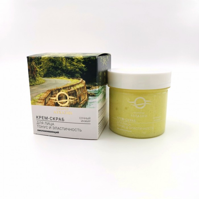 Омолаживающий крем-скраб для лица создан специально для Вас, ведь еще с древних времен морская соль славится своей целебной силой очищения души и тела. Нежный аромат инжира подарит приятные ощущении от процедуры, а натуральные масла какао, абрикоса и авокадо сделают Вашу кожу мягкой и эластичной. Природные антиоксиданты, содержащиеся в инжире и виноградной косточке, оказывают омолаживающий и тонизирующий эффекты уже после первого применения. Ощутите, благодаря крем-скрабу для лица, всю любовь Солнца Абхазии и сияйте молодостью и красотой.