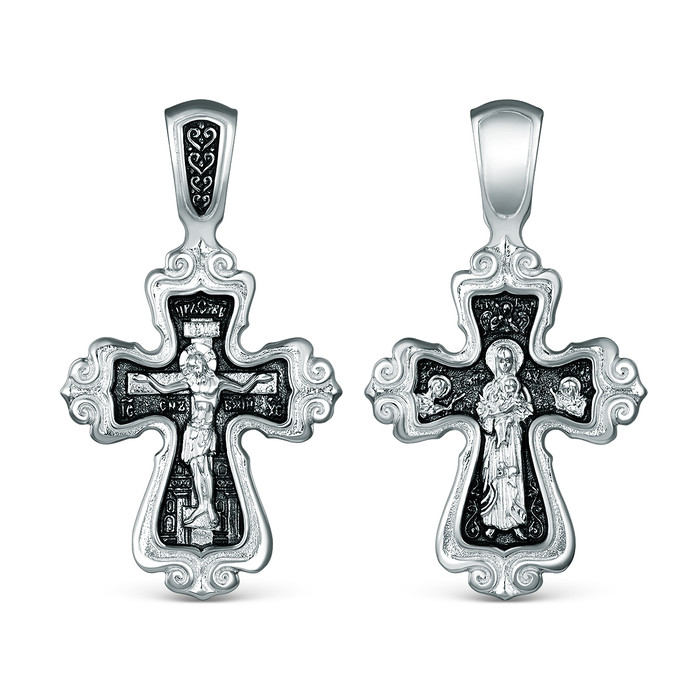 Совместные покупки Нижневартовск Ювелирные украшения и бижутерия Подвески — Крест двусторонний из чернёного серебра - Спаситель, Богоматерь 4,1 см 925 пробы