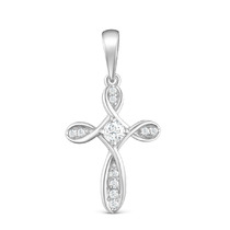 Подвеска из серебра с фианитами родированная - Крест 925 пробы 13-1022р