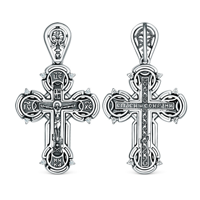 Совместные покупки Нижневартовск Ювелирные украшения и бижутерия Подвески — Крест из чернёного серебра с фианитами - Спаси и сохрани, 4 см ПР-151ч