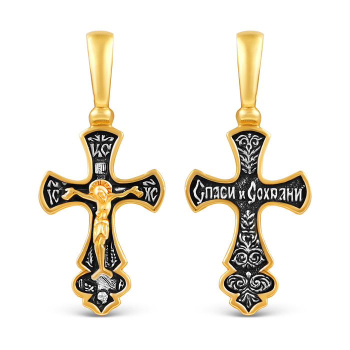 Совместные покупки Нижневартовск Ювелирные украшения и бижутерия Подвески — Крест из чернёного серебра с золочением - 3,1 см 925 пробы К3-340чз