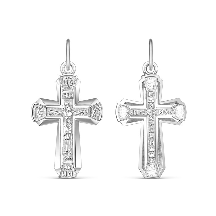 Совместные покупки Нижневартовск Ювелирные украшения и бижутерия Подвески — Крест из серебра родированный - Спаси и сохрани 3,4 см 925 пробы К3-593р