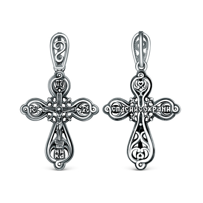 Совместные покупки Нижневартовск Ювелирные украшения и бижутерия Подвески — Крест православный из чернёного серебра - Спаси и сохрани 3,2 см ПР-013ч