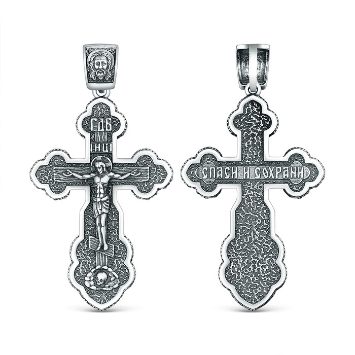 Совместные покупки Нижневартовск Ювелирные украшения и бижутерия Подвески — Крест православный из чернёного серебра - Спаси и сохрани 4,4 см ПК-017-2ч
