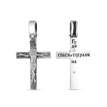 Крест православный из чернёного серебра - Спаси и сохрани 4,4 см ПК-017-2ч