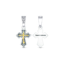 Крест православный из чернёного серебра с лимонным золочением - Спаси и сохрани,