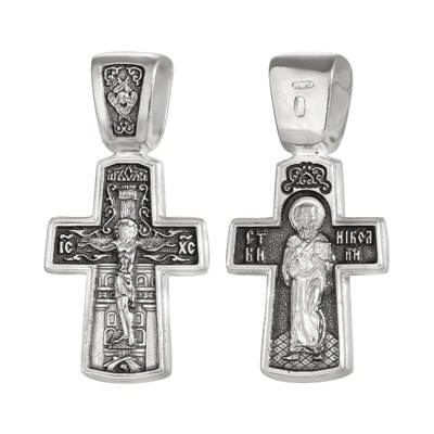 Крест (Свт.Николай) из серебра литье частичное чернение
