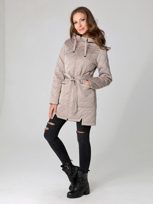 Демисезонная удлиненная куртка с втачными рукавами  подойдет для женщин и девушек любого возраста.  Застежка на двухзамковую молнию позволяет  легко расстегнуть куртку как сверху, так и снизу.   Воротник - стойка, переходящая в капюшон. Удобно расположенные накладные карманы имеют два функциональных входа: верхний и боковой, который фиксируется кнопкой. Есть внутренний кармашек на молнии. Линию талии, при желании, можно подчеркнуть поясом. Эта легкая стильная куртка с разноуровневой линией низа  выручит Вас на прогулке, на отдыхе и в городе.  Стеганная плащевая ткань имеет водоотталкивающую пропитку, которая выдержит небольшой дождь и легкий ветер. Хорошо зарекомендовавший себя утеплитель Холлофайбер плотностью 100 гр/м защитит от весенней прохлады. Подкладка в изделии - в мелкую полоску.  Фантазируйте с обувью и аксессуарами, и эта лаконичная по стилю  куртка станет незаменимой частью Вашего гардероба.